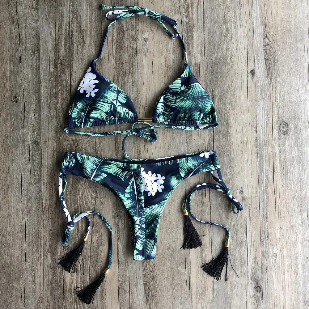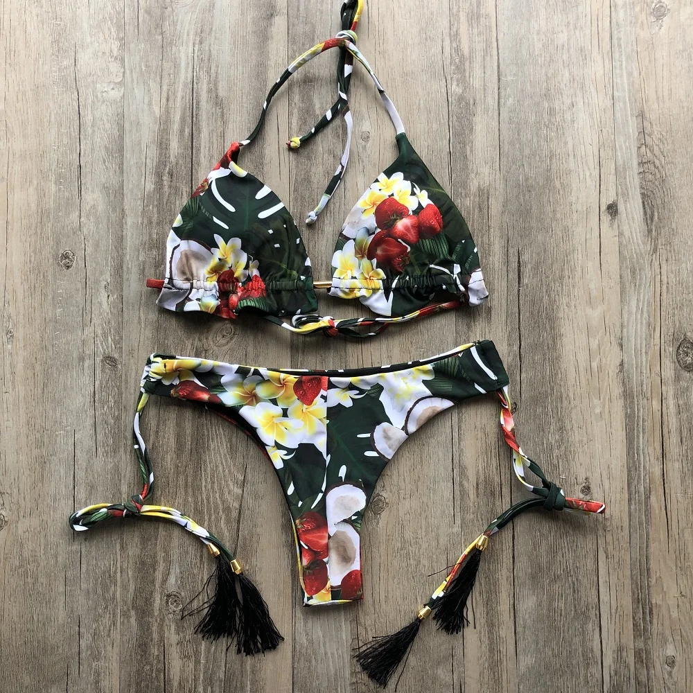 Бразильское бикини с пуш-ап и лямкой на шее в тропическом стиле 2022 год - купить