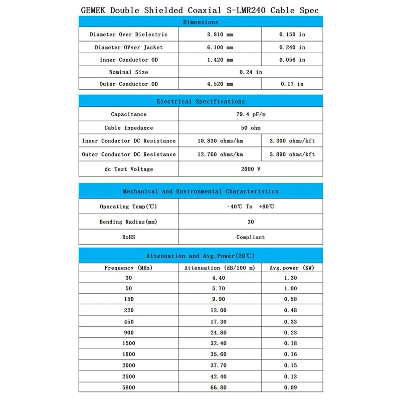 Низкая потеря S-LMR240 Размер коаксиальный, сопротивление: 50 Ом. S-LMR240 обеспечивает значительно более крупный Центральный проводник и поддерживает более эффективное удержание сигнала для более длительных проводов кабеля и более высокой частоты использования.