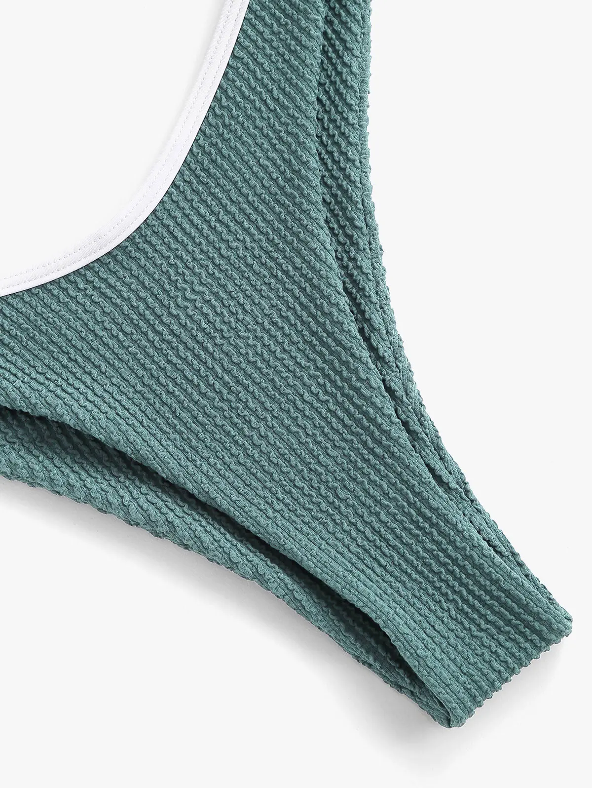 Купить Сплошной Текстурированный контрастный бикини на косточках купальник с высокими