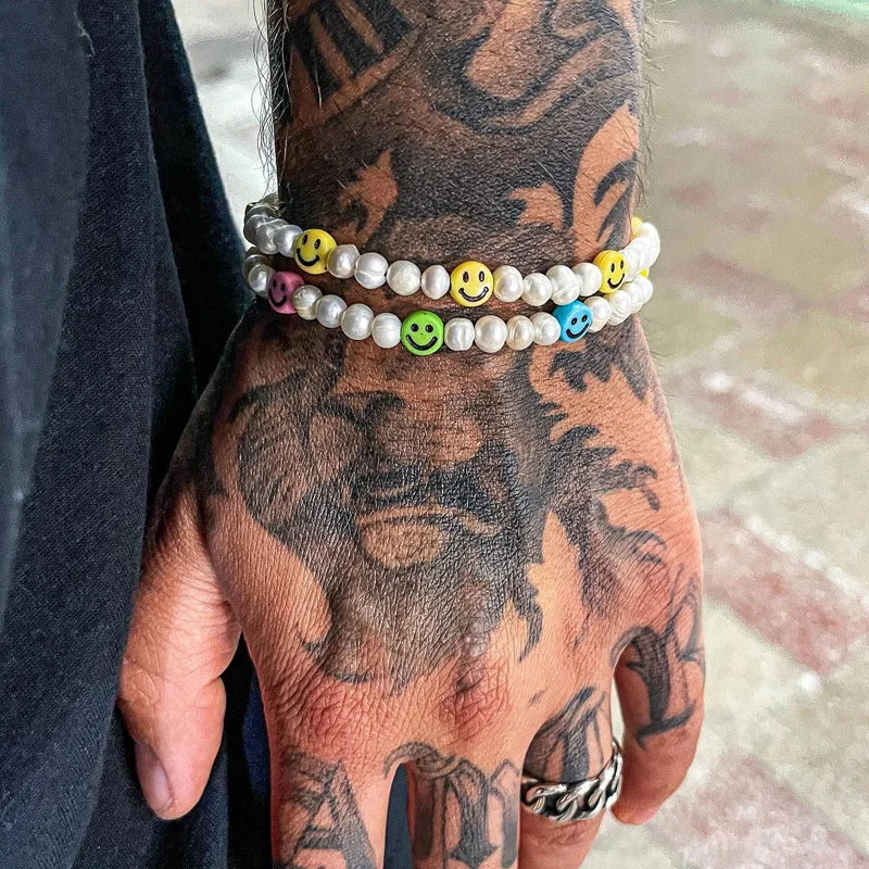 Отзывы о Новинка 2022 модный браслет с подвесками в виде смайлика мужской ручной работы 8 мм