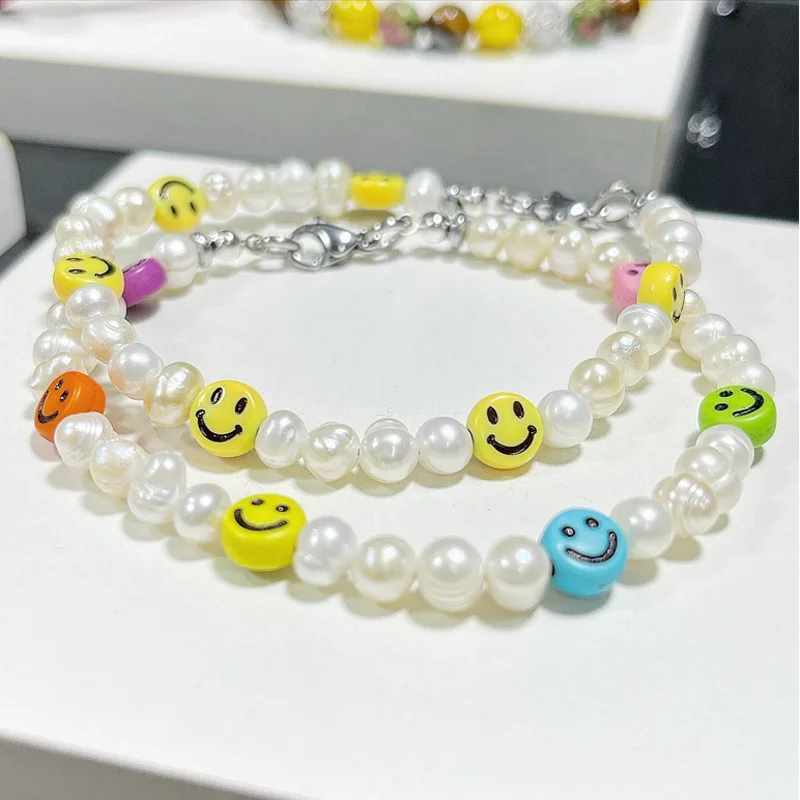 Новинка 2022 модный браслет с подвесками в виде смайлика мужской ручной работы 8 мм - купить