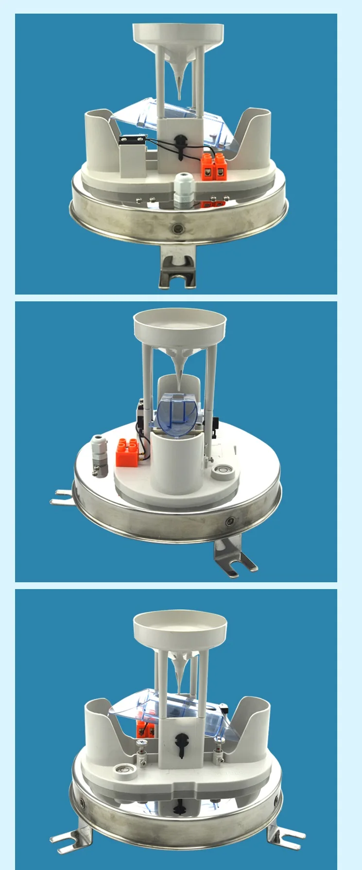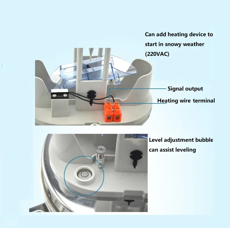 7. The inside of the chassis is equipped with a horizontal adjustment bubble, which can help the bottom angle to adjust the equipment to a good level.8. When the instrument is shipped from the factory, the tipping angle of the bucket has been adjusted and locked at the optimaltilting position. When installing the instrument, you only need to install the tipping bucket and the level of the adjusting base according to the
