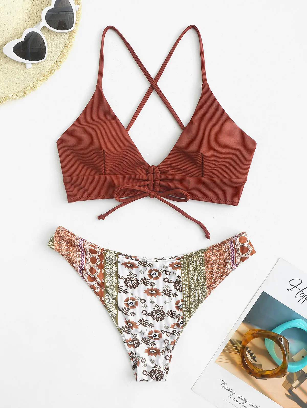 Отзывы о Женский комплект бикини с высоким вырезом в рубчик на шнуровке