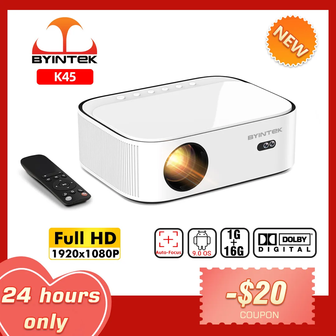 Отзывы о BYINTEK K45 AI Автофокус Dolby Smart Proyector Android WIFI Full HD 1920x108 0 ЖК-светодиодный проектор для