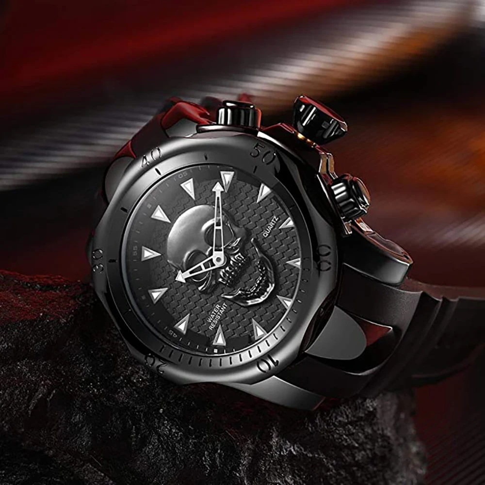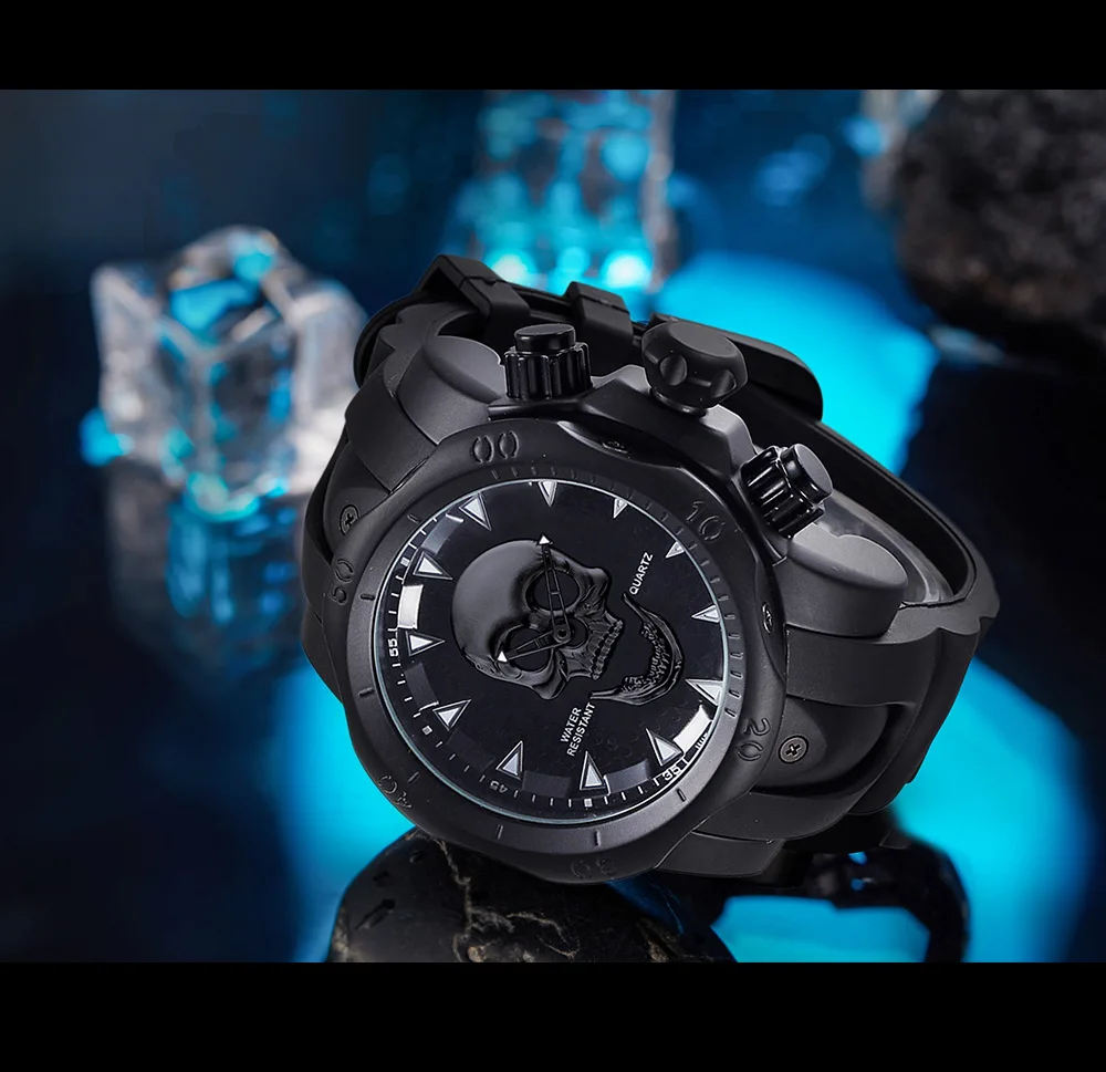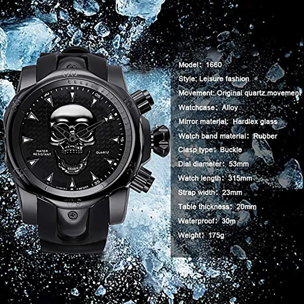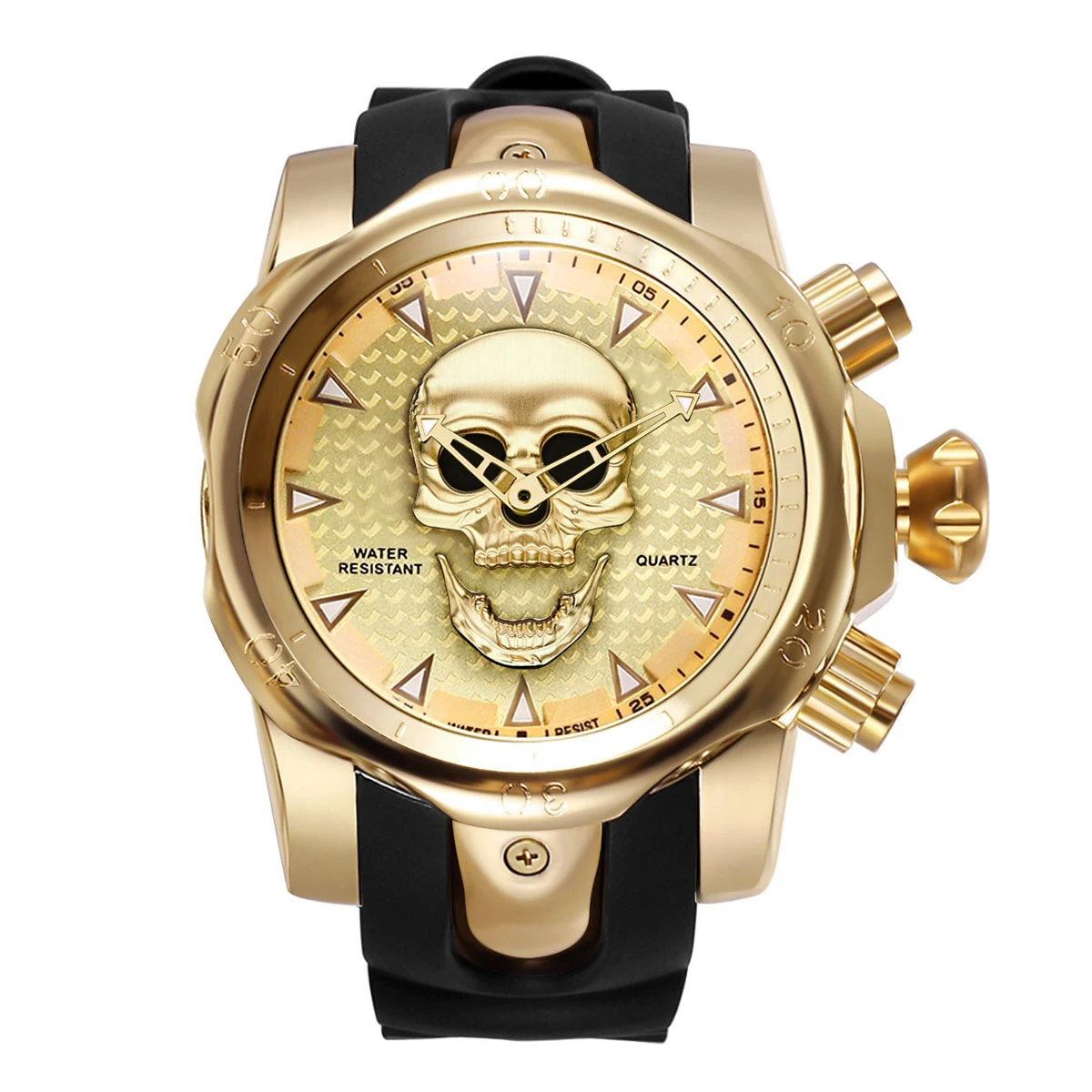 Повседневные мужские модные часы с черепом, силиконовый с большим циферблатом, кварцевые наручные часы, кварцевые часы