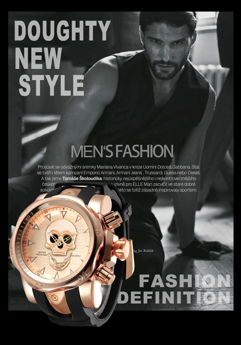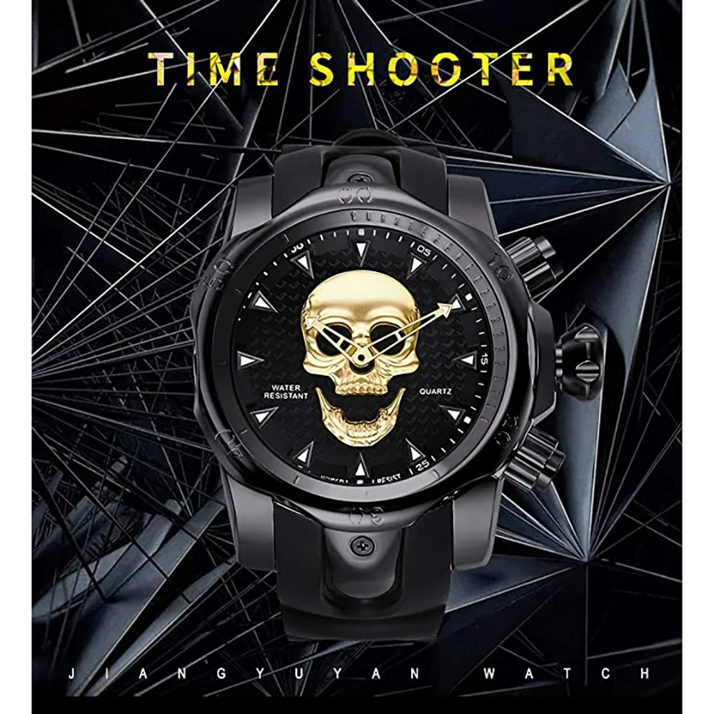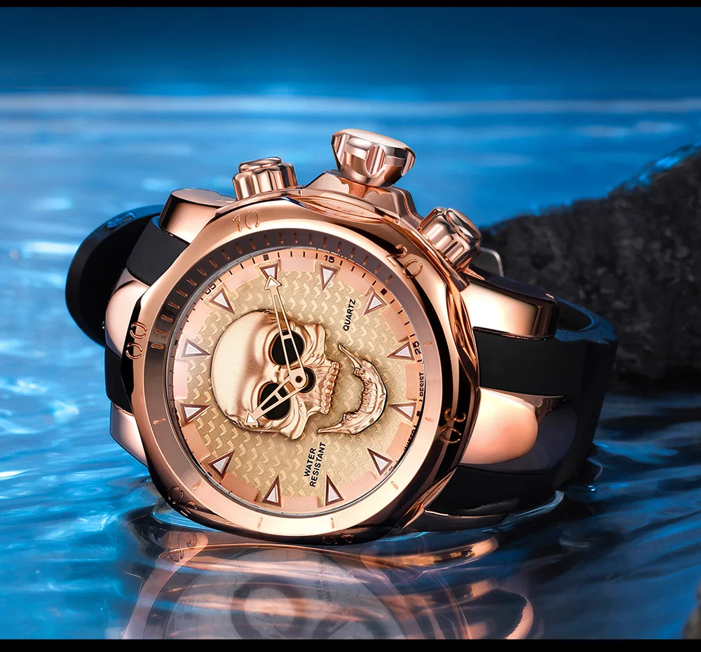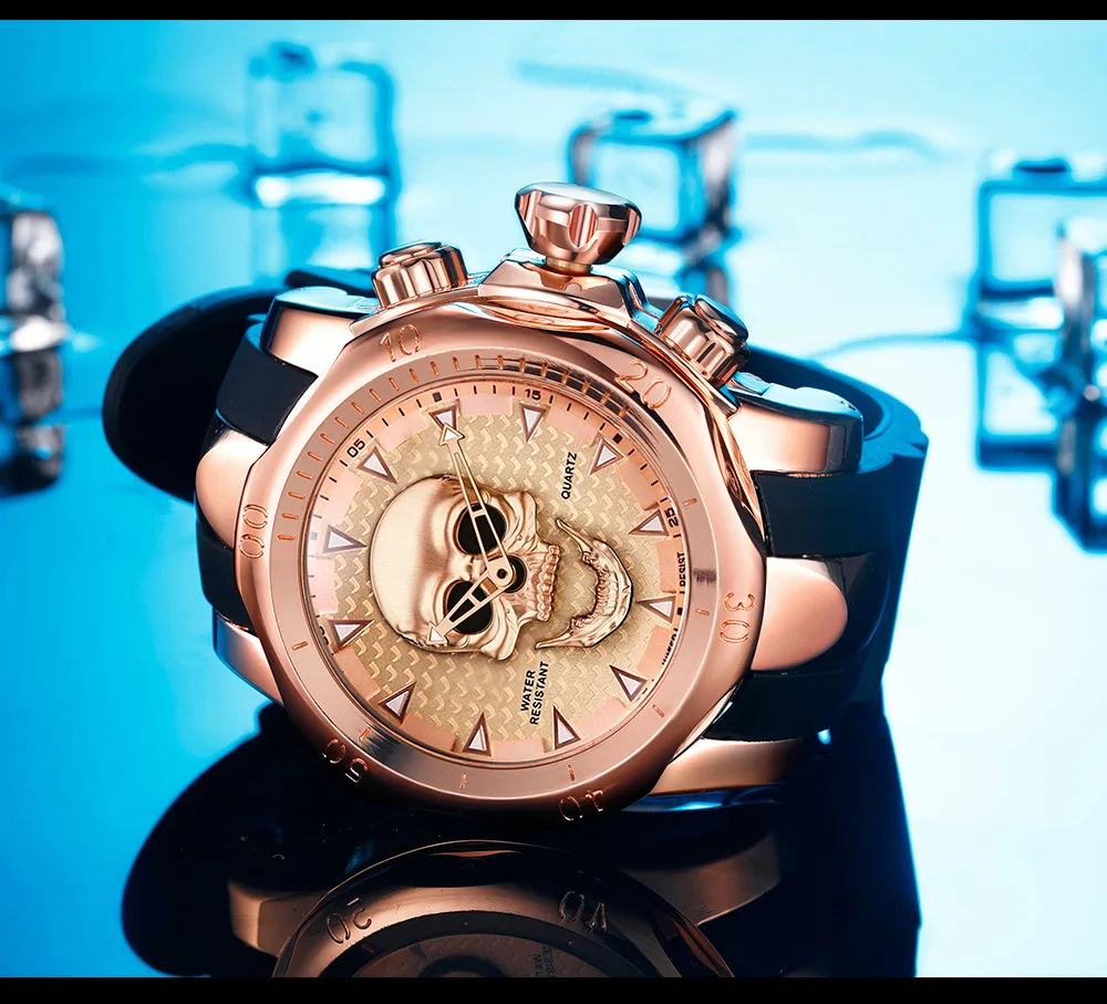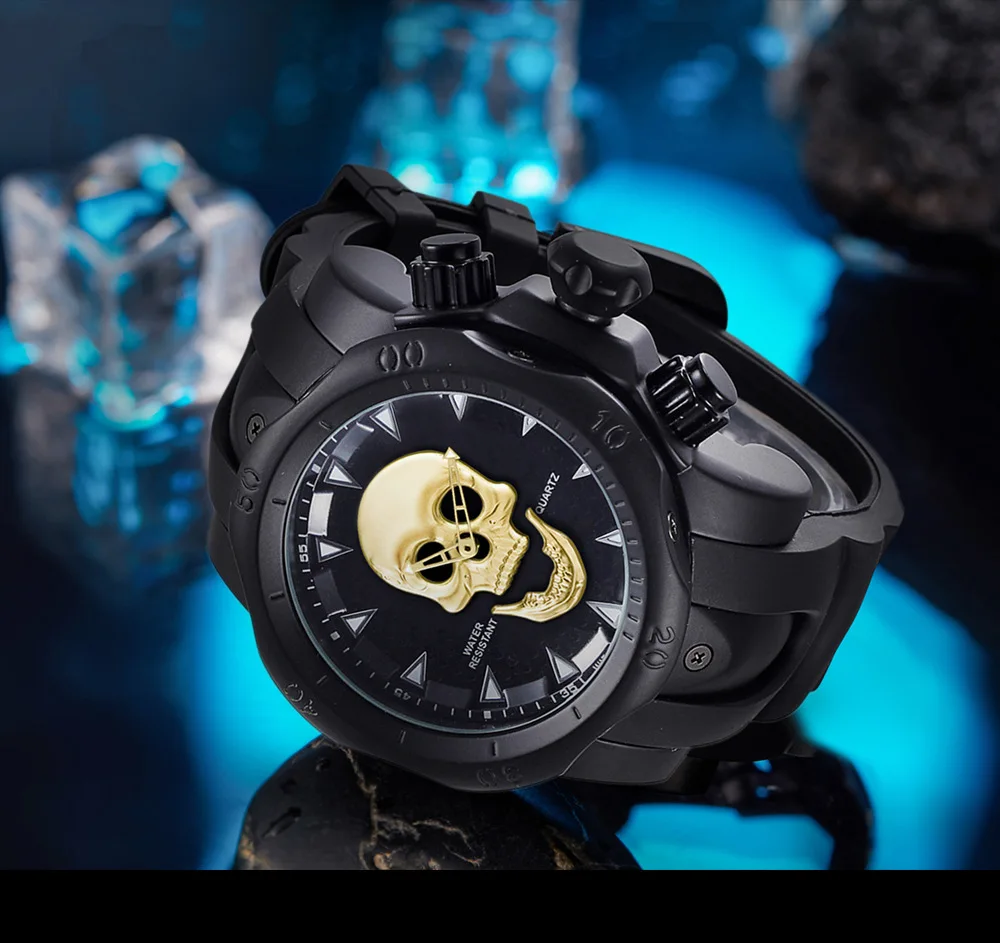 Повседневные мужские модные часы с черепом, силиконовый с большим циферблатом, кварцевые наручные часы, кварцевые часы