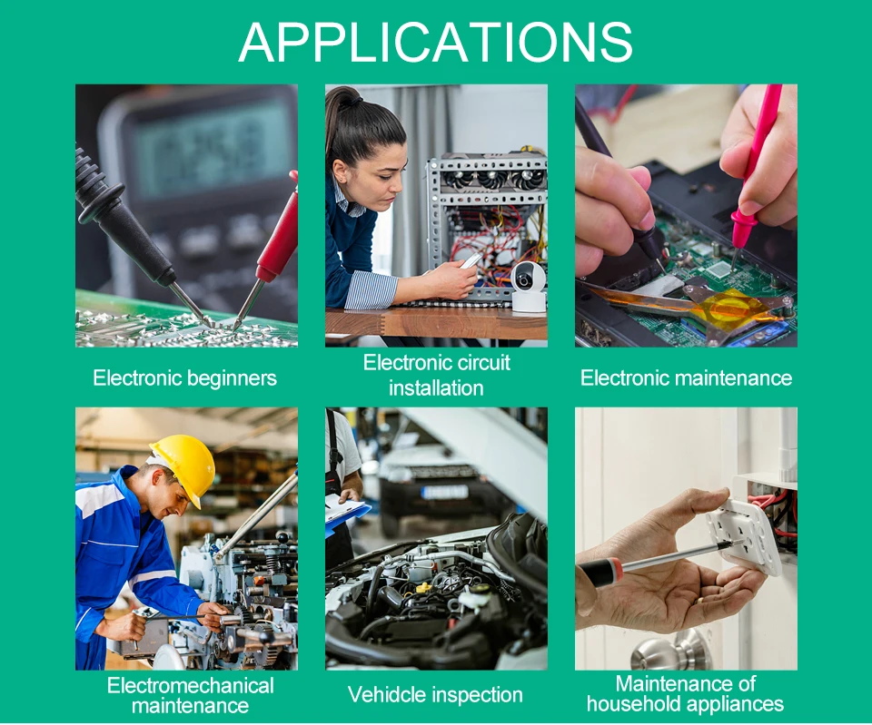 5. Широкое применение: Цифровой мультиметр-удобный инструмент и помощник, для тестирования, диагностики и решения различных автомобильных и повседневных бытовых электрических проблем безопасно и точно.