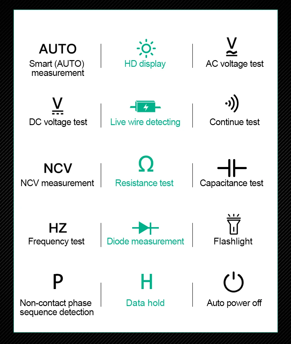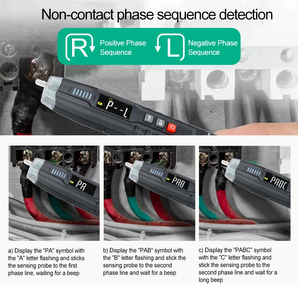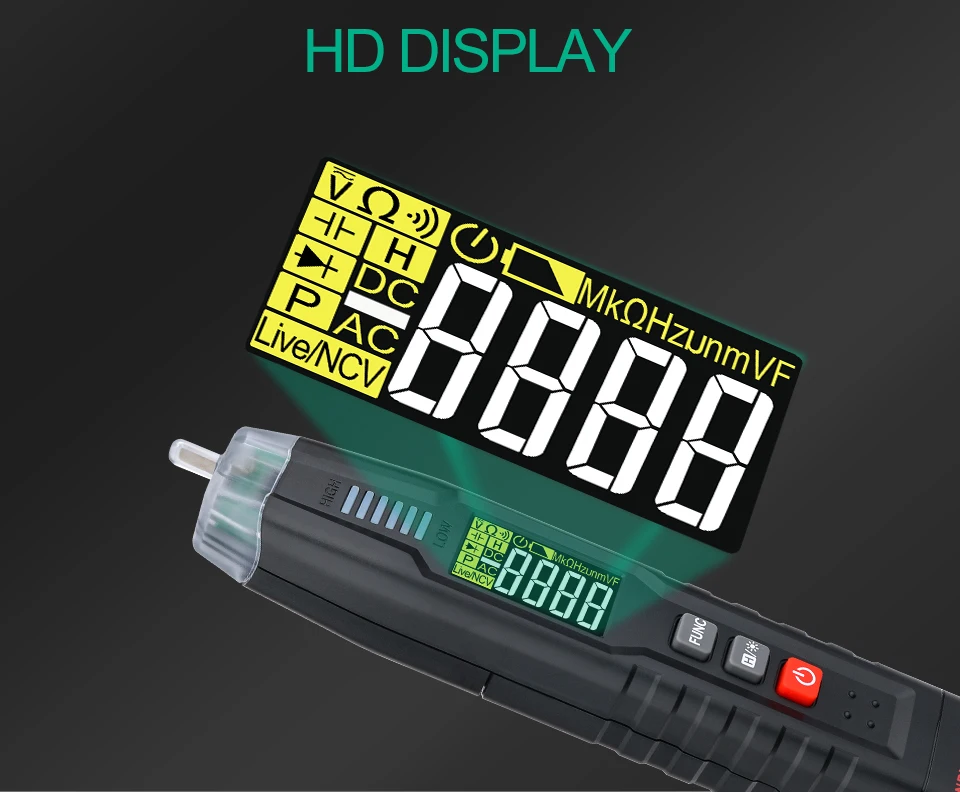 1. Универсальный мультиметр-Ручка: Этот мультиметр отличается испытанием напряжения/сопротивления/емкости/диода/частоты/непрерывности, пожарной линии и бесконтактной фазы обнаружения последовательности и т. Д.