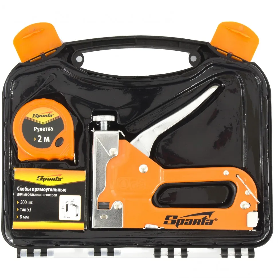 Купить Набор: степлер мебельный регулируемый скобы 500 шт рулетка 2м. тип 53 4-14 мм | SPARTA 42003