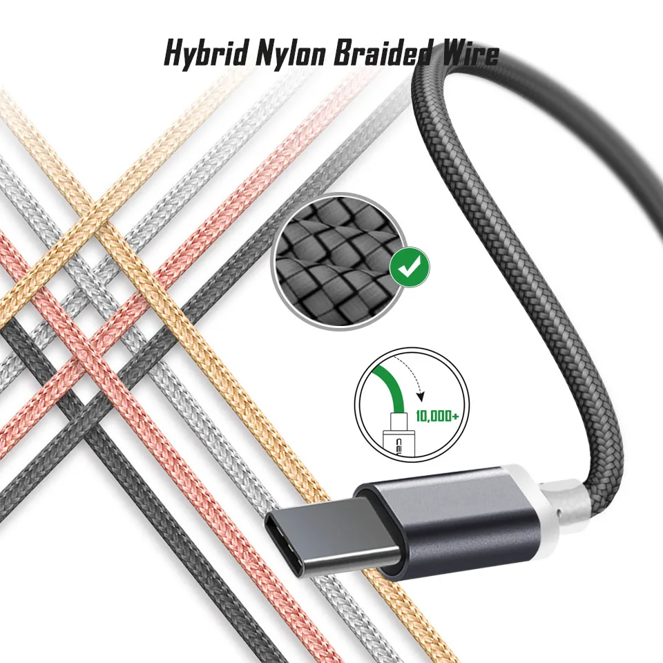 Характеристики: ▲ порт типа C Strong прочная нейлоновая оплетка, чистая медь внутри, алюминиевая оболочка ▲ 4 цвета, 1 м/2 м/3 м/25 см длина Support поддержка зарядки и передачи данных long 10 мм Длинный разъем типа c, может заряжать телефон с толстым чехол и подходит для телефона с интерфейсом длинного типа c