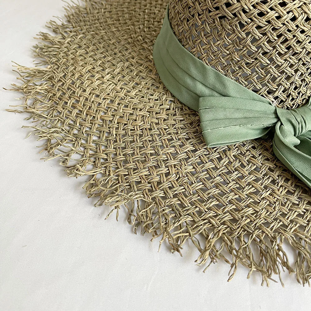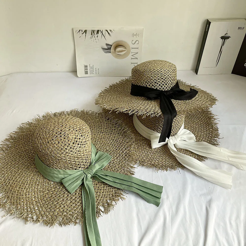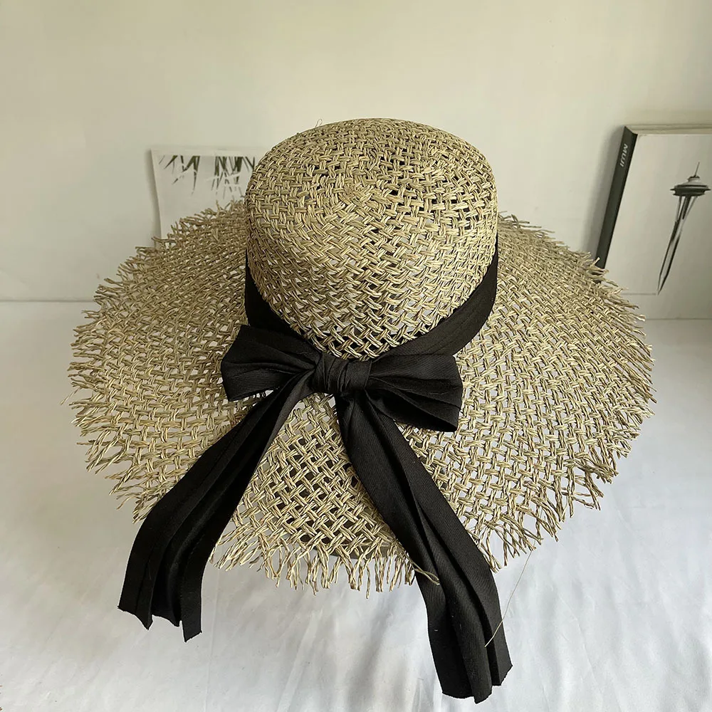 Модные плоские соломенные шляпы ручной работы с большими полями из морской травы - купить