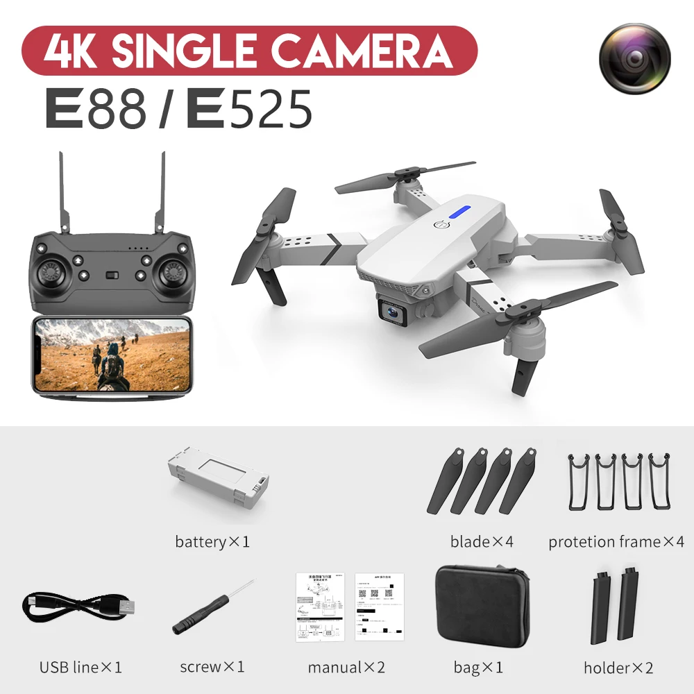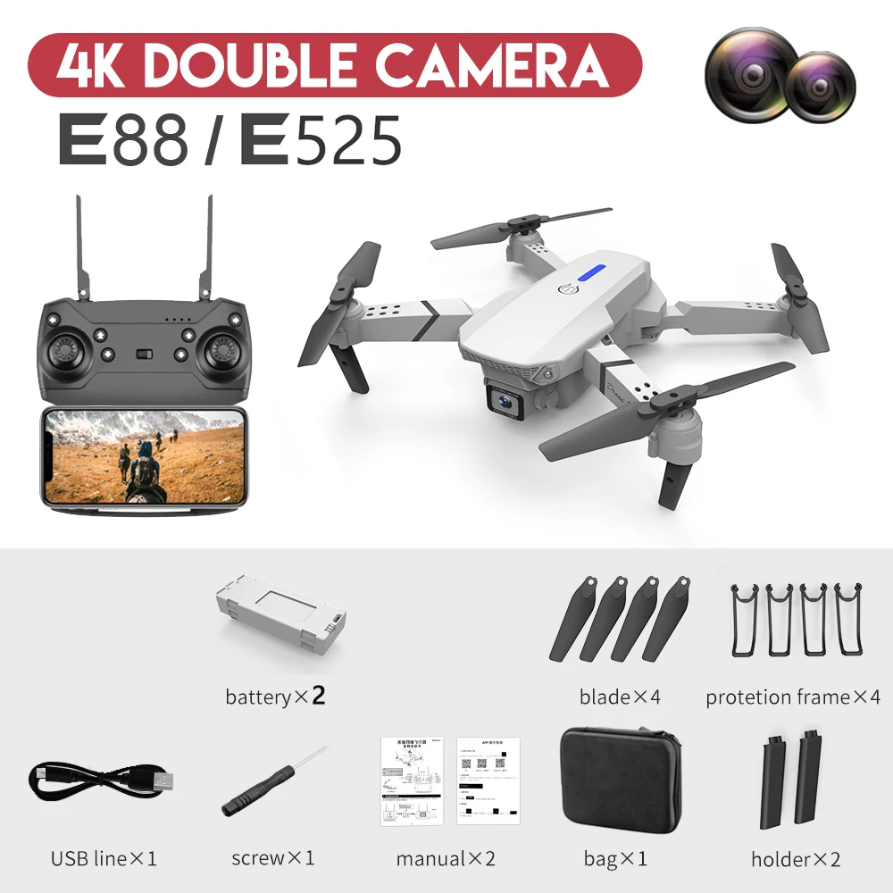 Мини-Дрон на радиоуправлении складной вертолет E88 с одной/двойной батареей Wi-Fi FPV - купить