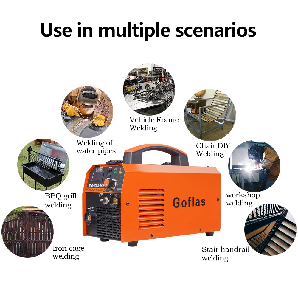 2 в 1 полуавтоматическая инверторная Сварка многофункциональная Контактная сварка дуговой сварки без газа 220 В MIG/MMA-250 подходит 0,8 мм 1,0 мм