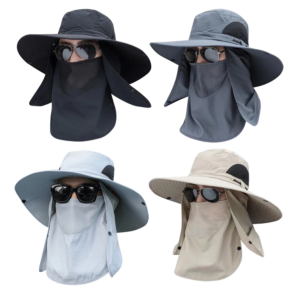 Регулируемый шляпа с широкими полями Boonie Sun шапка, маска для лица Для женщин Мужчины Спорт на открытом воздухе козырек от солнца для рыбалки Пеший Туризм Охота спортивный дышащий ведро для Кепки