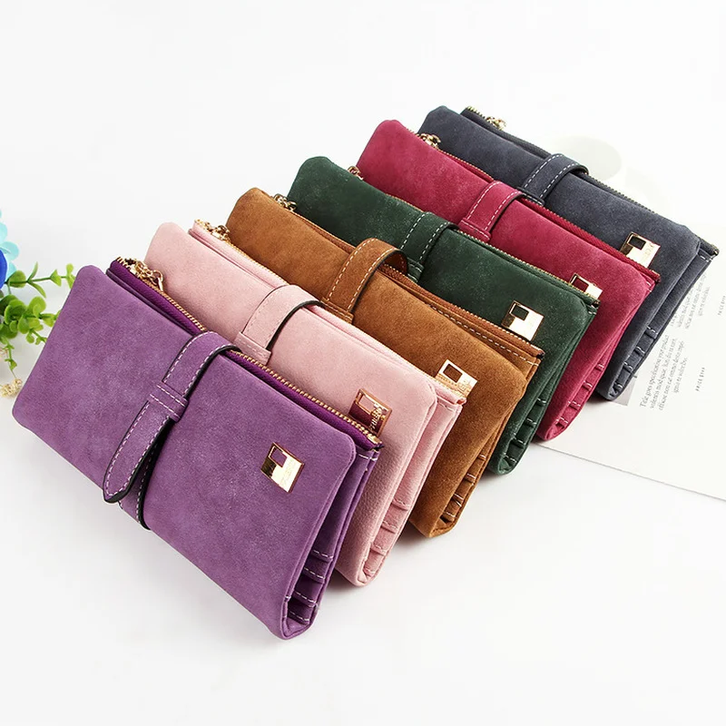 Новые женские кошельки из нубука на шнурке кошелек молнии Женский Длинный - купить