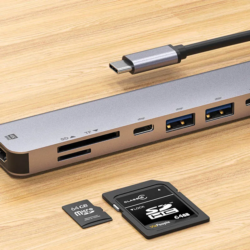 PD3.0 многофункциональная док-станция Type-C к HDMI SD/TF кардридер адаптер-разветвитель 4k - купить