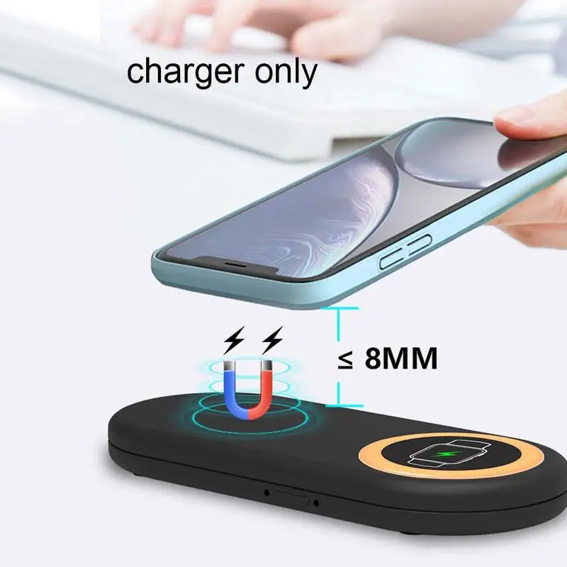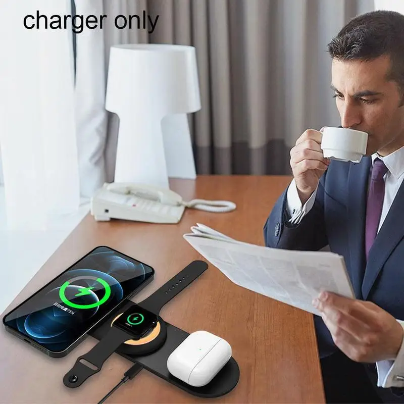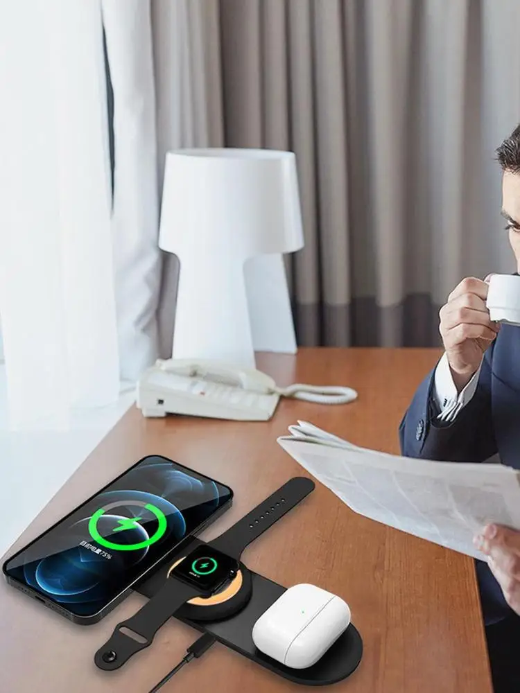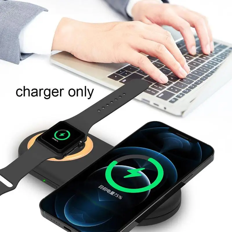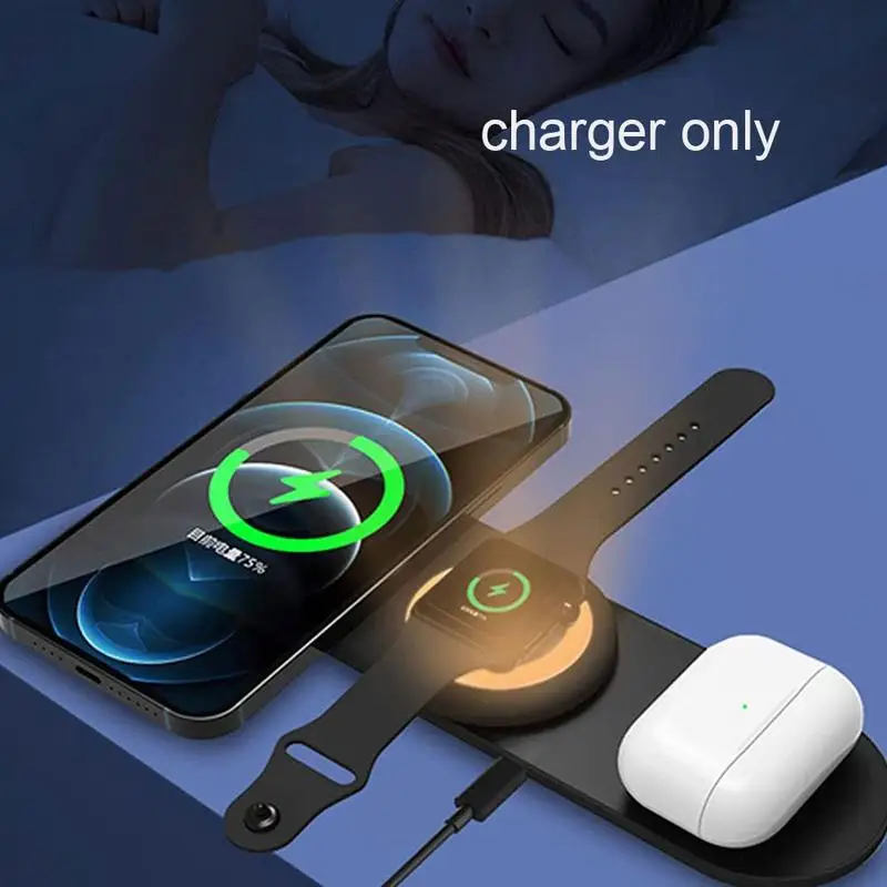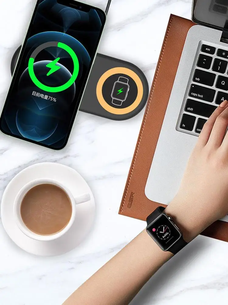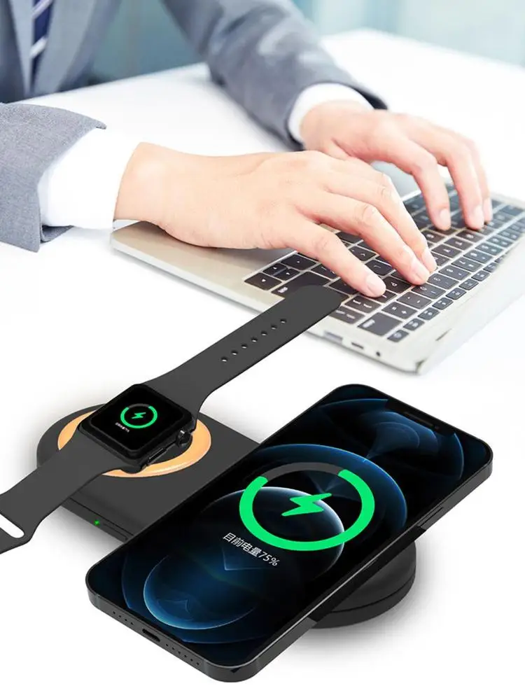 3 в 1 дизайн зарядки Беспроводная зарядная станция поддерживает зарядку вашего iPhone, Apple Watch, Air Pods, в то же время. Магнитные технологии будут идеально выравниваться каждый раз.