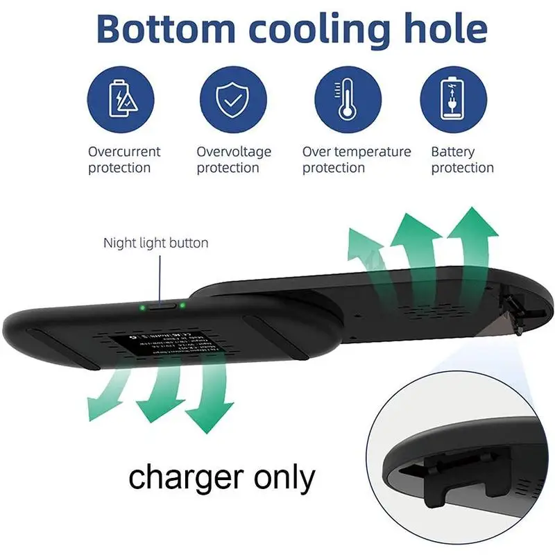 Беспроводная зарядка обеспечивает многократную защиту. Встроенная перезарядка, перегрев, защита от короткого замыкания и обнаружение посторонних объектов обеспечивают безопасность ваших устройств. С массивными отверстиями для рассеивания тепла на спине зарядка становится еще более прохладной и безопасной. Это может предотвратить повреждение батареи от перезаряда.