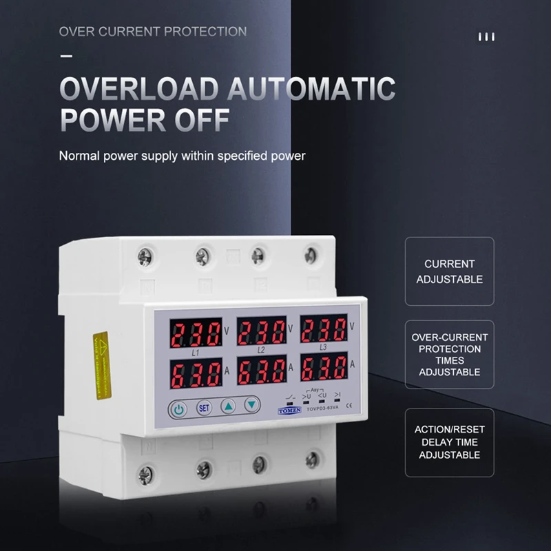 Отзывы о Трехфазный реле напряжения на Din-рейку Hot 380 Вольт вольтметр амперметр контроля запаса и перегрузки защита регулировка тока 63А