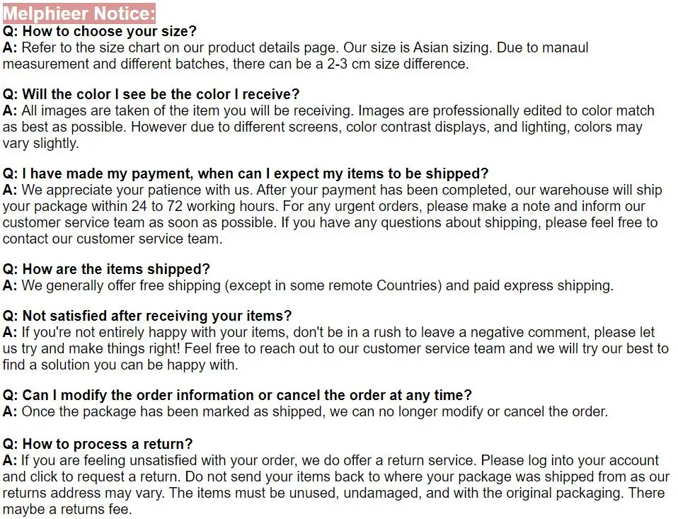 1. Различия в цвете могут возникнуть из-за различных настроек различных компьютеров. Мы гарантируем, что дизайн на 100% такой же, как на фотографии.