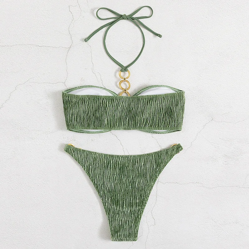 Отзывы о Женский дизайнерский купальник в стиле ретро однотонное зеленое бикини с рюшами