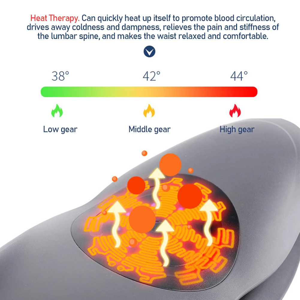 Вибрационный массаж. Использует встроенные мощные массажные двигатели для создания успокаивающей вибрации. Может усилить массажный эффект и дополнительно снять напряжение и болезненность мышц поясницы.