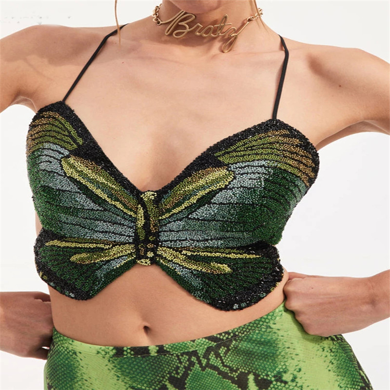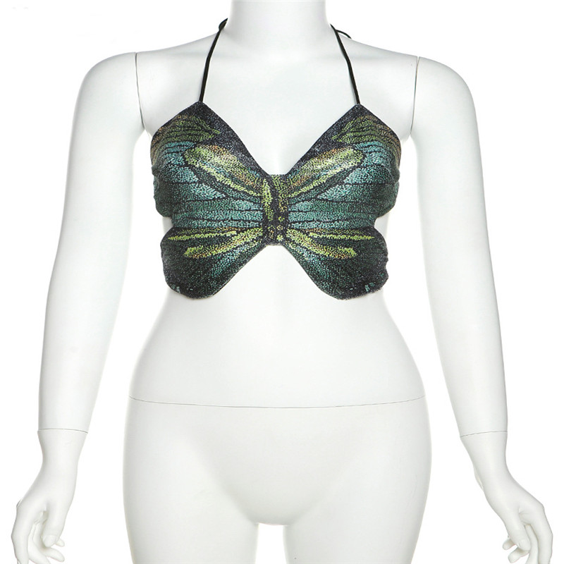 Купить Женский винтажный топ на бретельках с бабочкой без рукавов |