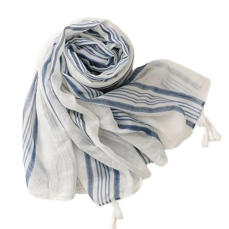 Шаль из льна и хлопка с ручной вышивкой "Балийский узор" - купить