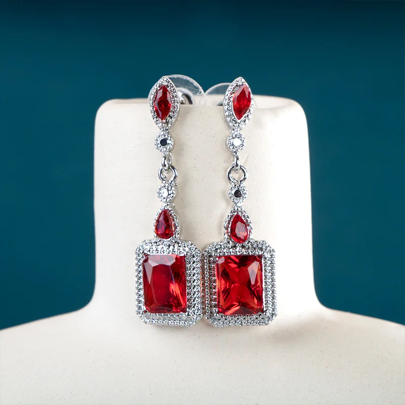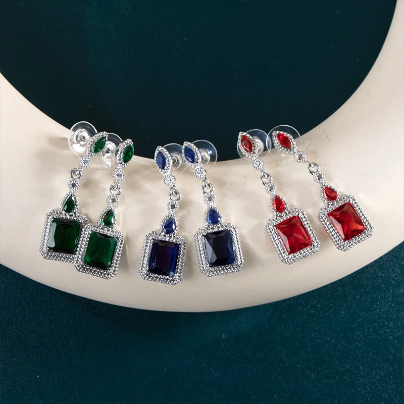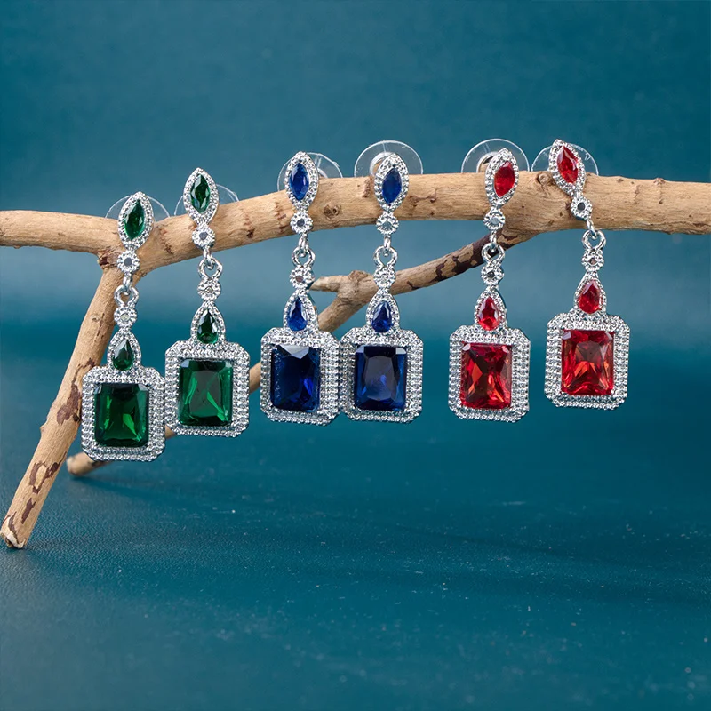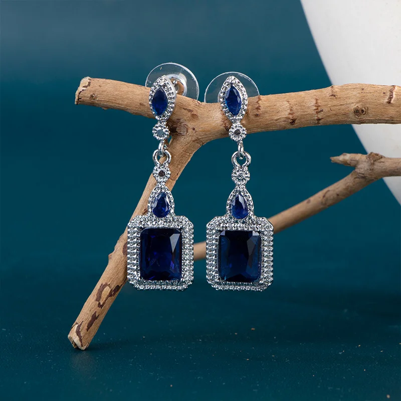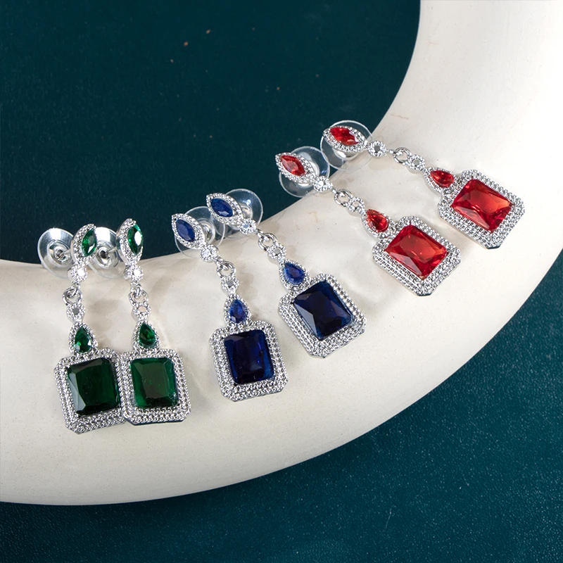 Отзывы о Женские серьги-подвески Bella Box голубые и красные серьги с цирконом 5a ювелирные