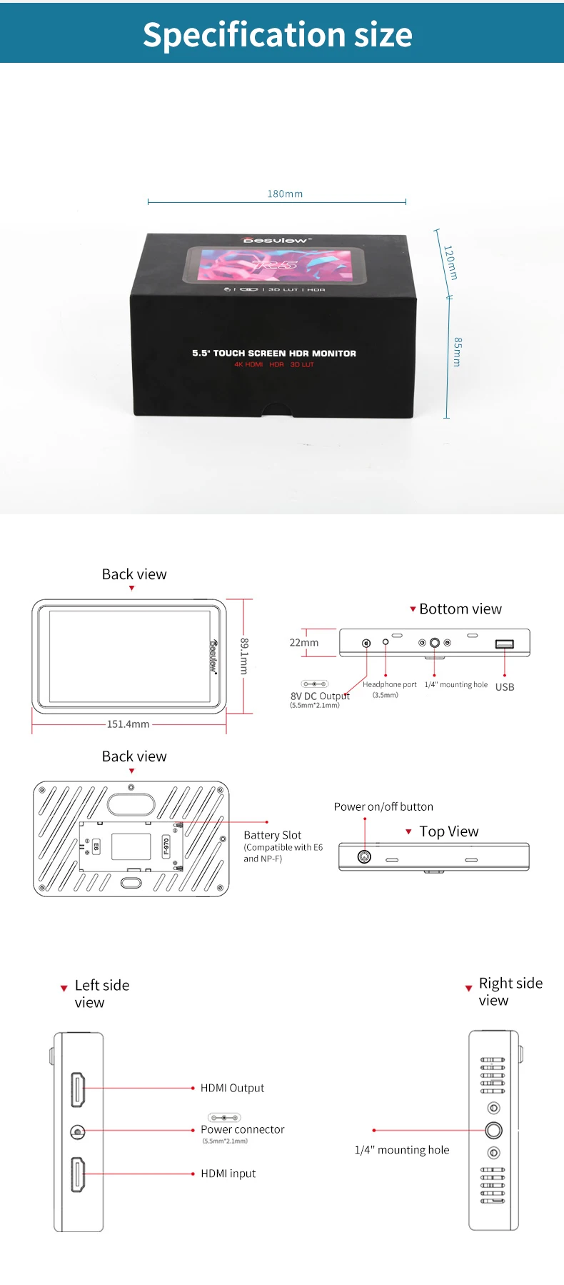 Отзывы о Desview Bestview R5 II R5II 4K HDMI сенсорный экран HDR 3D LUT монитор 5 дюймов Full HD 1920x108 0 IPS поле
