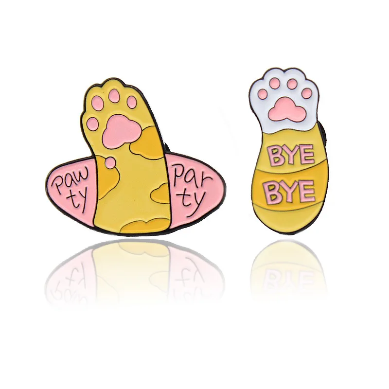 Купить Sweet Animal Cat Paw Enamel Brooch Cute English Kitten BYE Alloy Pins Custom Badge Fashion Woman Jewelry Gift For Friends |