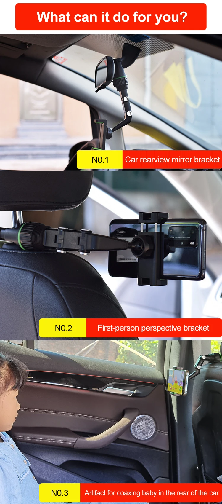 Универсальный многофункциональный мобильный телефон держатель телефона, машины зеркало заднего вида заднего сиденья Видео Фото съемка Автомобильный держатель для телефона