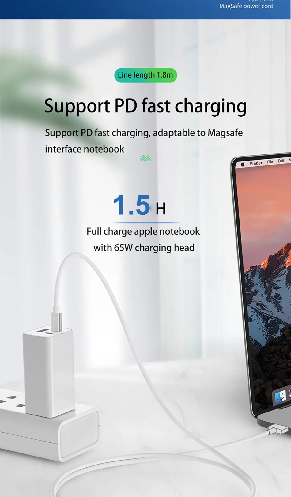 Ihuigol Новый 1,8 м светодиодные фонари магнитные для USB C к Mag Безопасный 2 1 быстрая зарядка кабель PD зарядное устройство для MacBook Air Pro адаптер питания