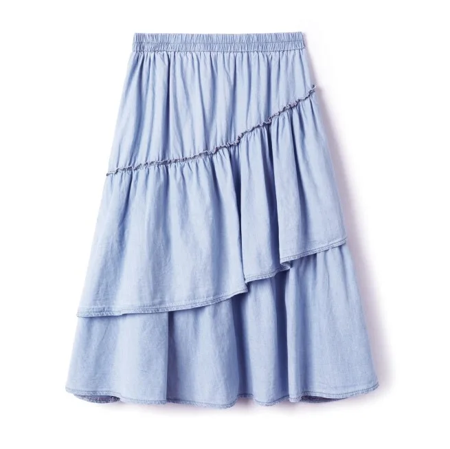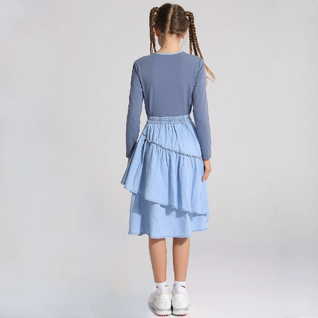 Отзывы о Джинсовая юбка средней длины с оборками для девочек-подростков хлопок новинка 2022
