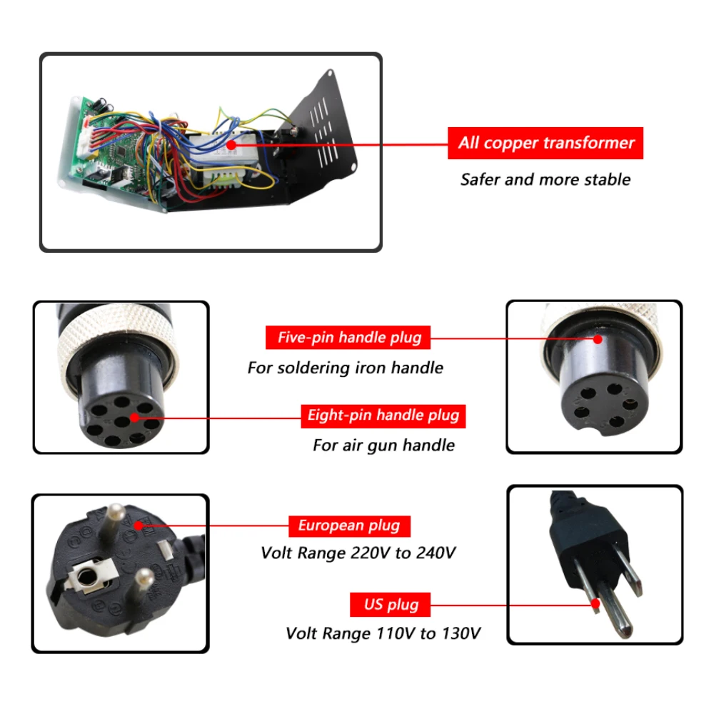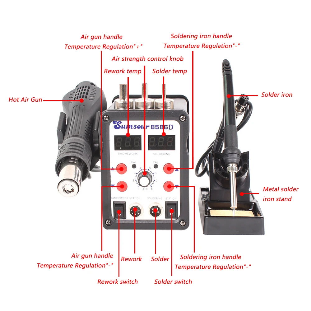 and power saving. You can use hot air gun and soldering iron separately, with no interference with each other.