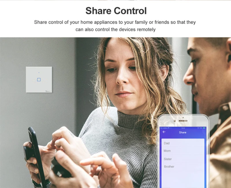 Совместим с функцией IFTTT, переключатели могут взаимодействовать с множеством устройств и услуг, чтобы включить или выключить их. Есть несколько сложных шагов, когда мы начинаем получать доступ к умному дому, для сопряжения, введите учетную запись и пароль, имя и так далее. Управление share обеспечивает быстрый способ, позволяющий вам и вашей семье управлять устройствами вместе. Вы не уверены, выключаете ли нагреватель, когда выходите из дома, Просто вытащите свой телефон и откройте приложение eWeLink, чтобы проверить состояние устройства в режиме реального времени.