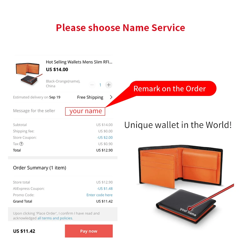Пожалуйста, укажите свое имя в течение 24 часов или мы добавим имя получателя на бумажнике.