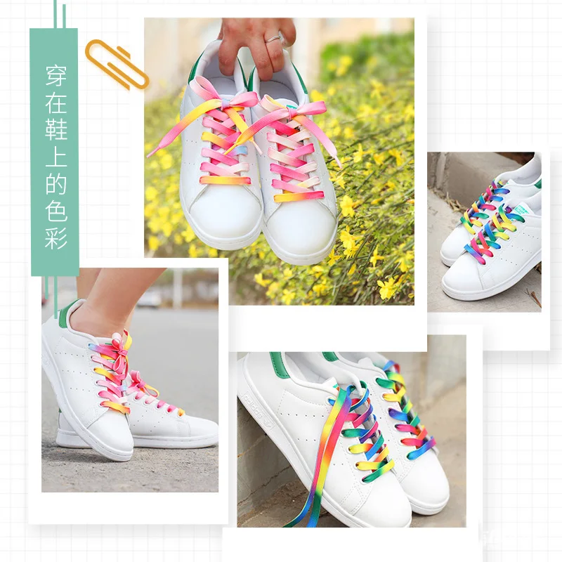 Купить Шнурки радужного цвета для обуви аксессуары холщовые спортивные белые подходят