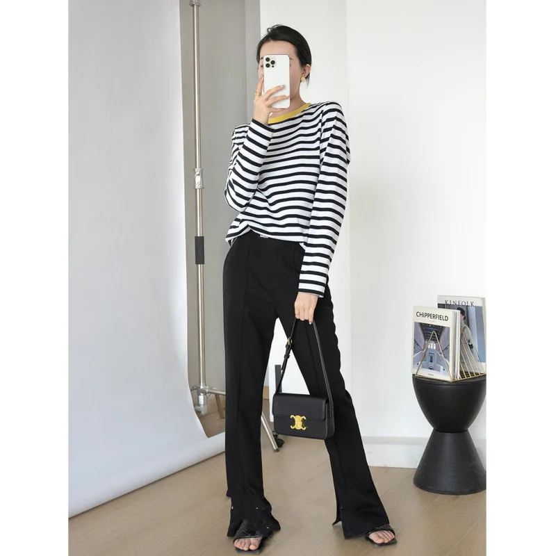 Отзывы о Классические футболки в полоску из 100% хлопка с длинным рукавом весна-осень