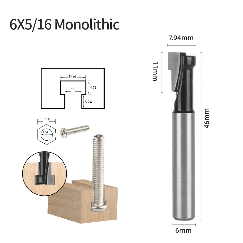 Набор фрез для деревообработки с Т-образным хвостовиком диаметром 6 мм и длиной 35 8 штук - купить