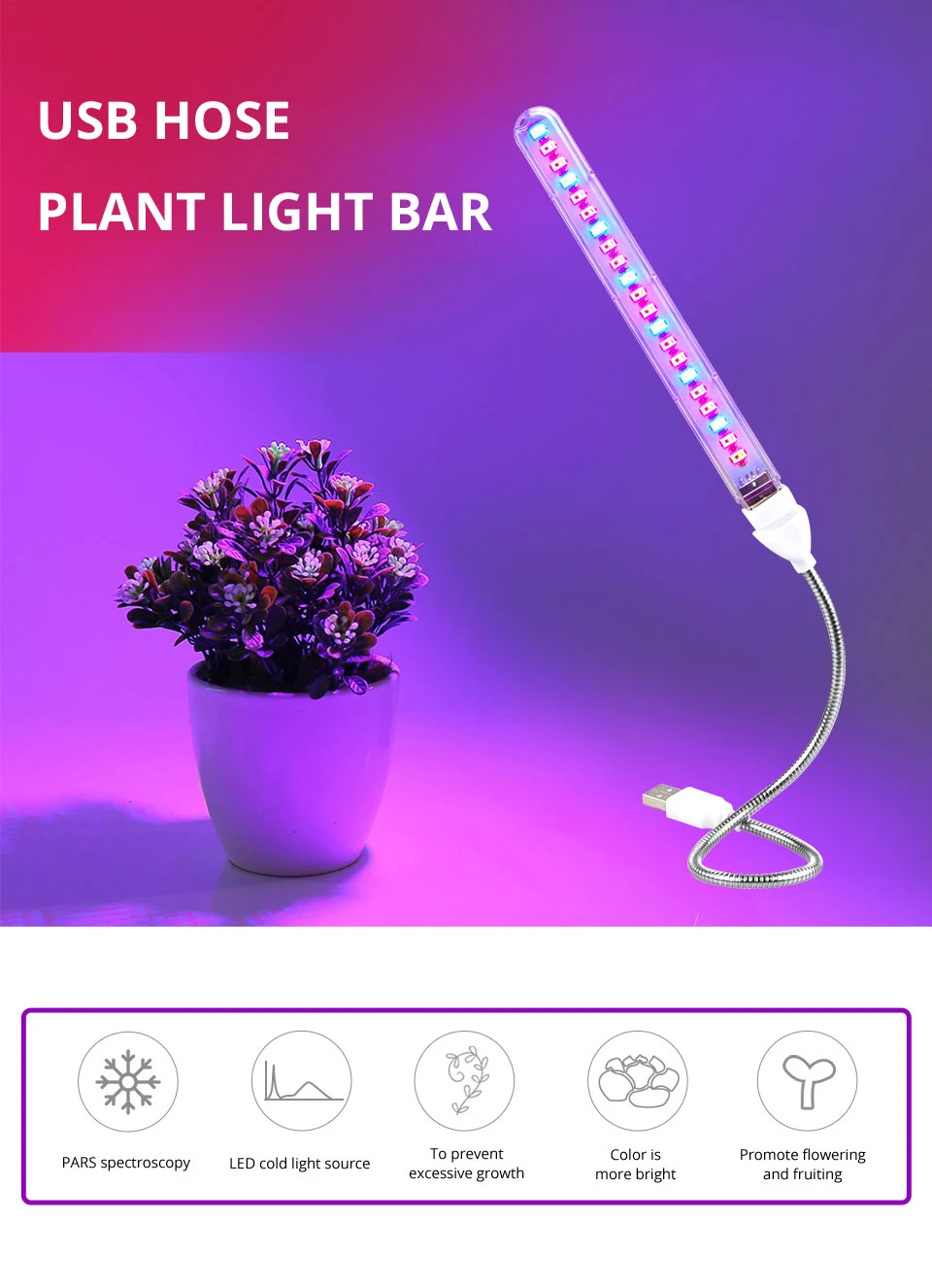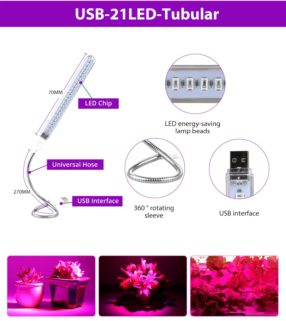 Светодиодная фитолампа полного спектра для гидропоники 5 В 21 светодиод - купить - купить