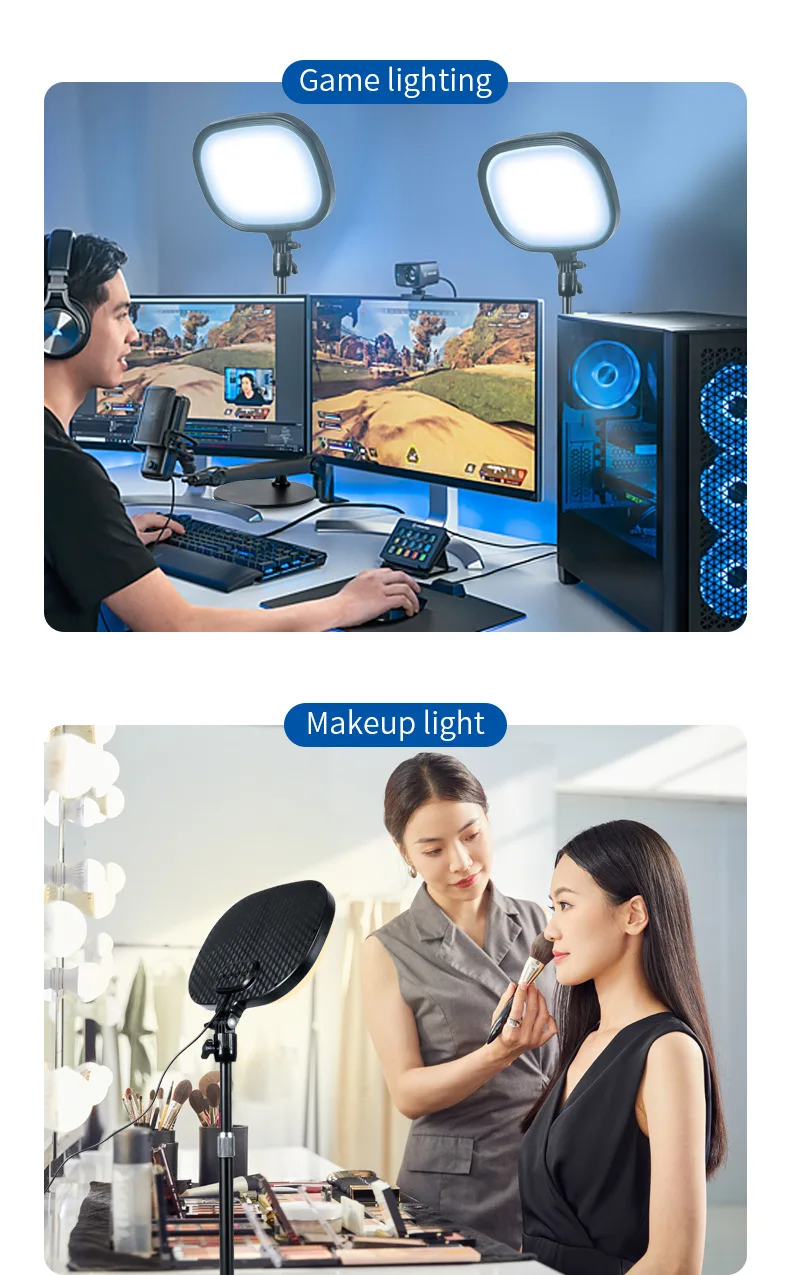 2. 5 различных цветовых температур: холодная, Смешанная холодная, Смешанная теплая, Холодная Теплая, теплая, может использоваться для видеозвонков, потокового видео/игр, масштабирования конференций, студии youtube, онлайн-обучения, запись видео, встреча онлайн заполняющий светильник.