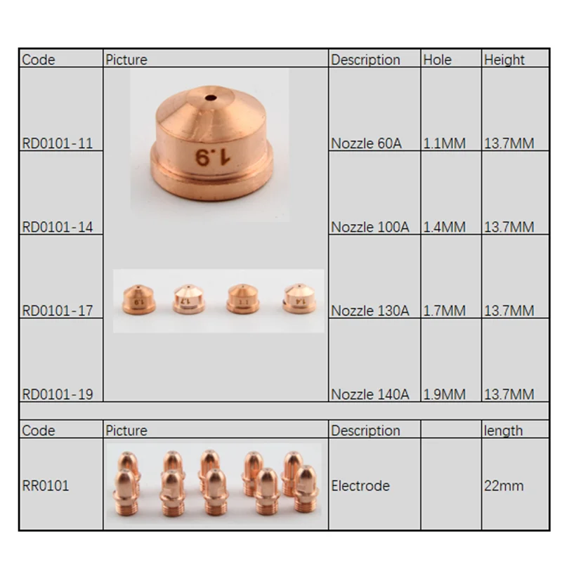 Отзывы о Электрод сопла для плазменной резки Trafimet A141 10 штук диаметр 1 мм-9 мм