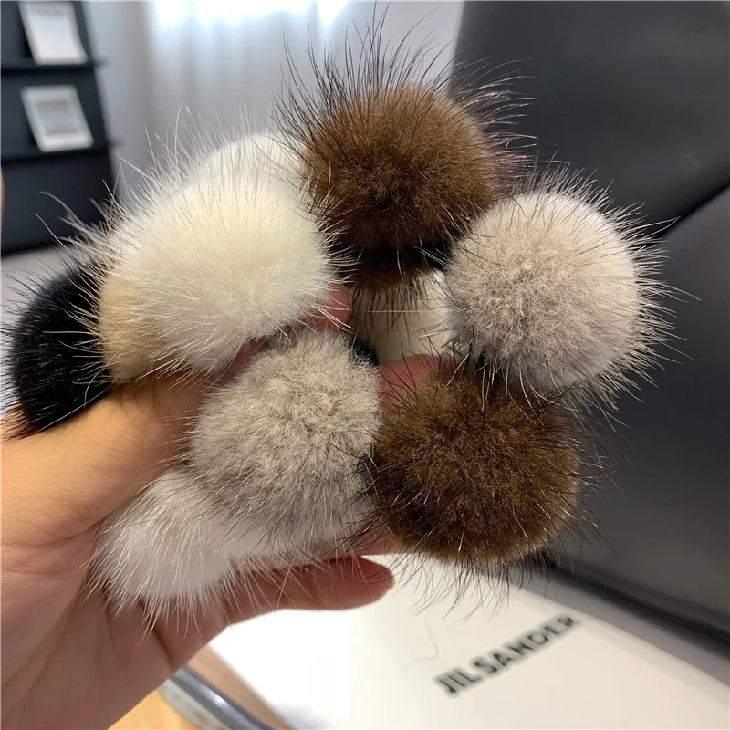Купить Роскошный натуральный мех норки плюшевые шарики Цветы для женщин эластичная