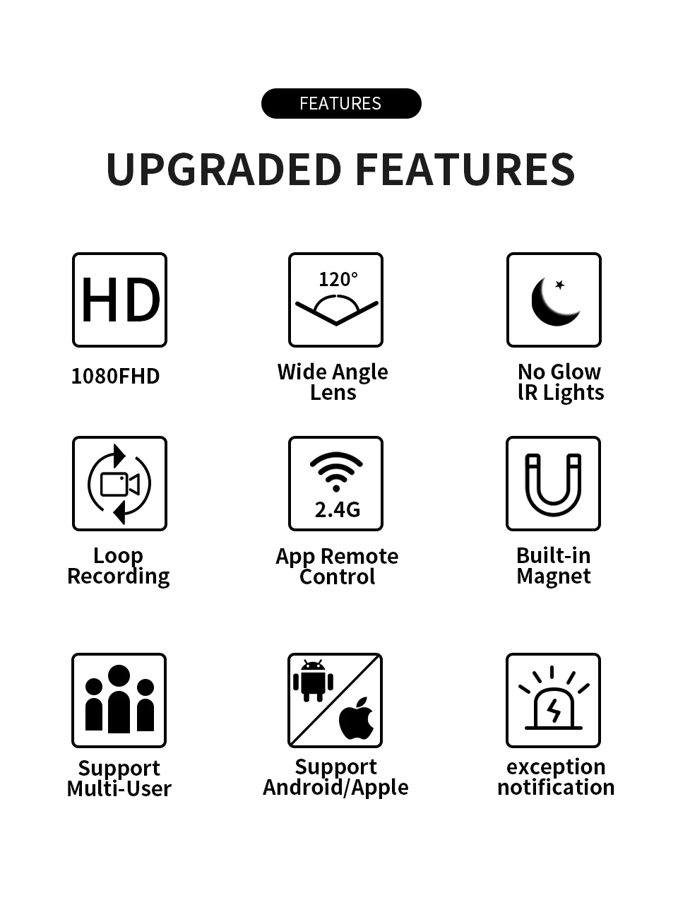 Эта маленькая ванная комната с камерой имеет встроенный магнит, который хорошо работает с любым железным материалом и может быть легко помещен в любом месте. Эта маленькая камера оснащена жестким зарядным кабелем и базой. При зарядке во время записи можно вручную повернуть угол записи на 360 градусов.