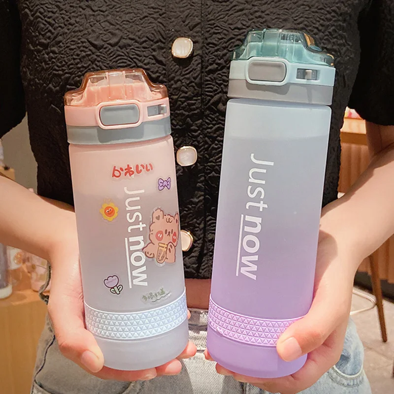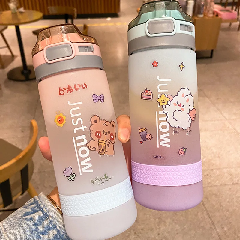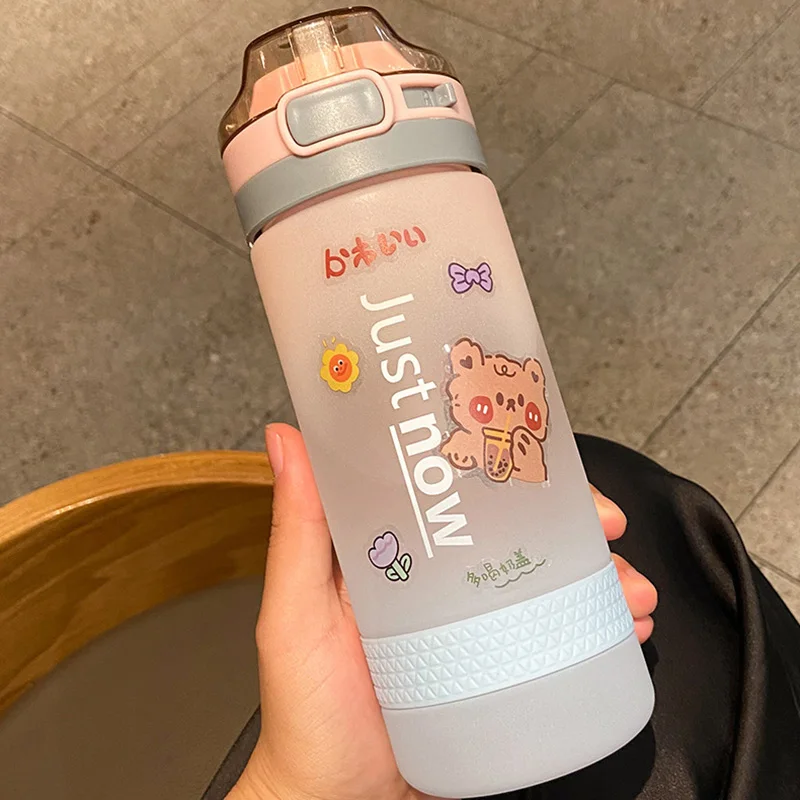 Купить Спортивная бутылка с мягкой присоской 600 мл милая для воды со шкалой откидная