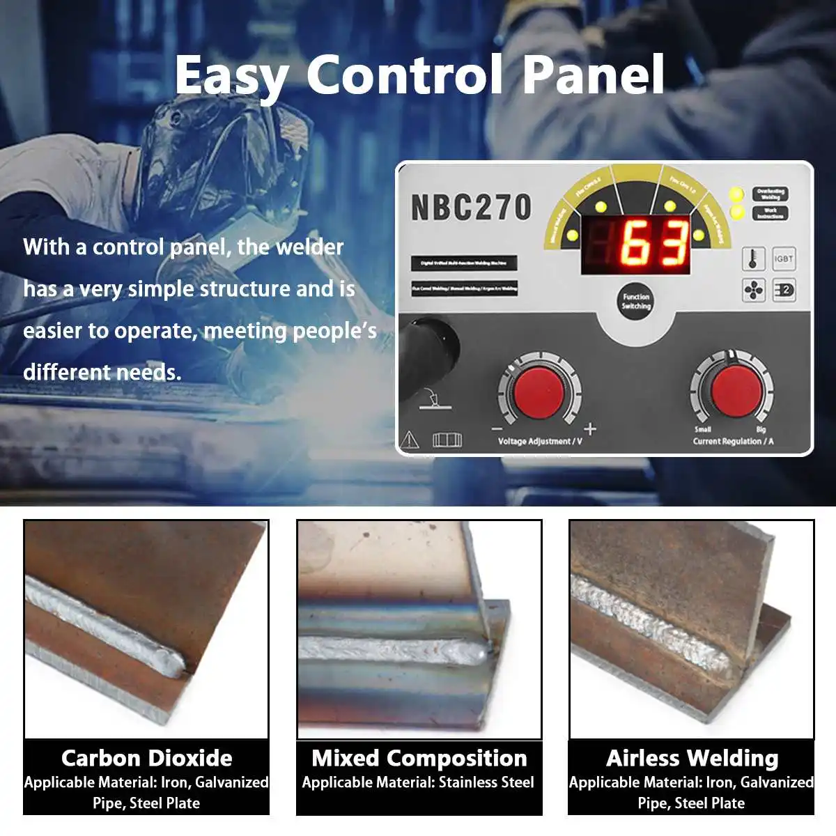 -Подходит для сварки железа, нержавеющей стали, легированной стали, углеродистой стали и других металлов даже в первый раз.