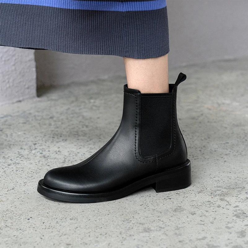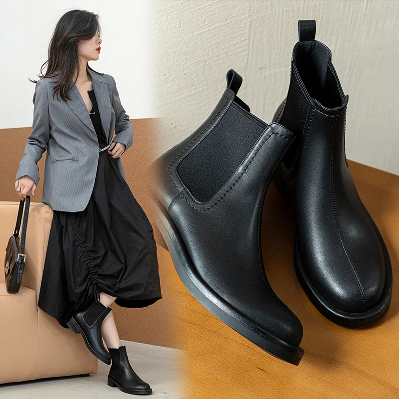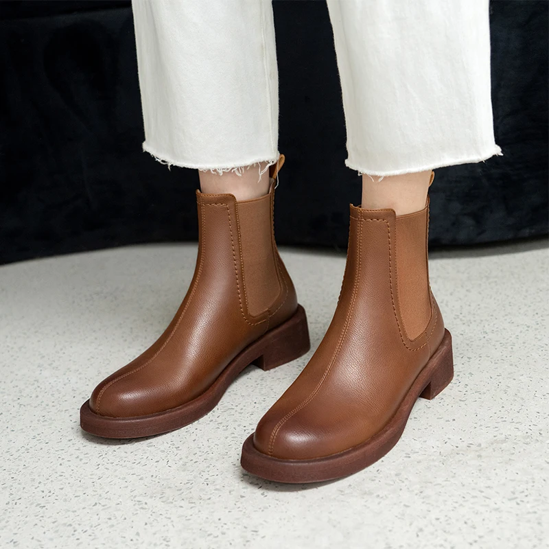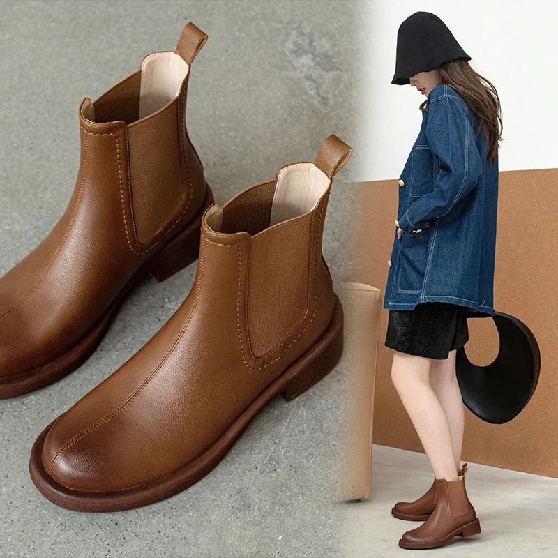 Ботильоны для женщин из натуральной кожи с круглым мысом размером 22-25 см - купить