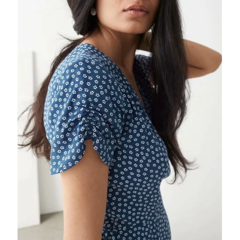 Отзывы о Женское шифоновое платье-мини в горошек Элегантное синее платье-трапеция с