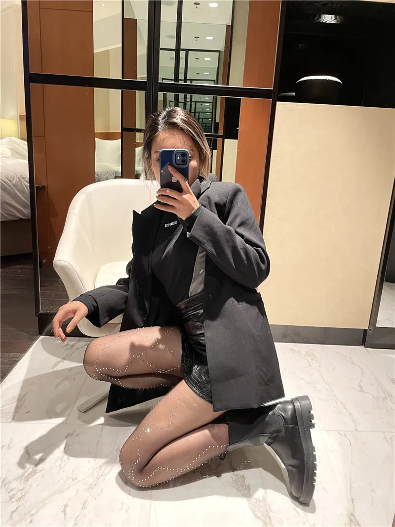 Новинка летние колготки для девушек Oxygen со стразами милые крутые черные женские - купить